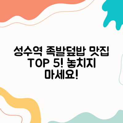 당신이 족발덮밥을 좋아한다면 성수역은 정말 매력적인 장소예요! 다양한 맛집들이 모여있어서 고민하게 만들죠. 오늘은 꼭 가봐야 할 5곳을 소개할게요. 어떤 맛집이 있을지 기대되시죠?