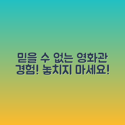 이와 같은 방법들을 통해 관객들은 단순한 영화 상영을 넘어서, 영화관에서의 경험을 더욱 특별하고 감동적으로 만들어가는 길을 찾을 수 있습니다. 영화관의 새로운 모습을 경험하며, 삶의 작은 여유를 즐기는 방법이 될 것입니다.